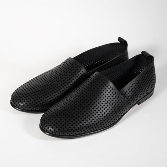 HERMES エルメス エレオス モカシン スリッポン シューズ ブラック メンズ Sスタンプあり #42 1/2